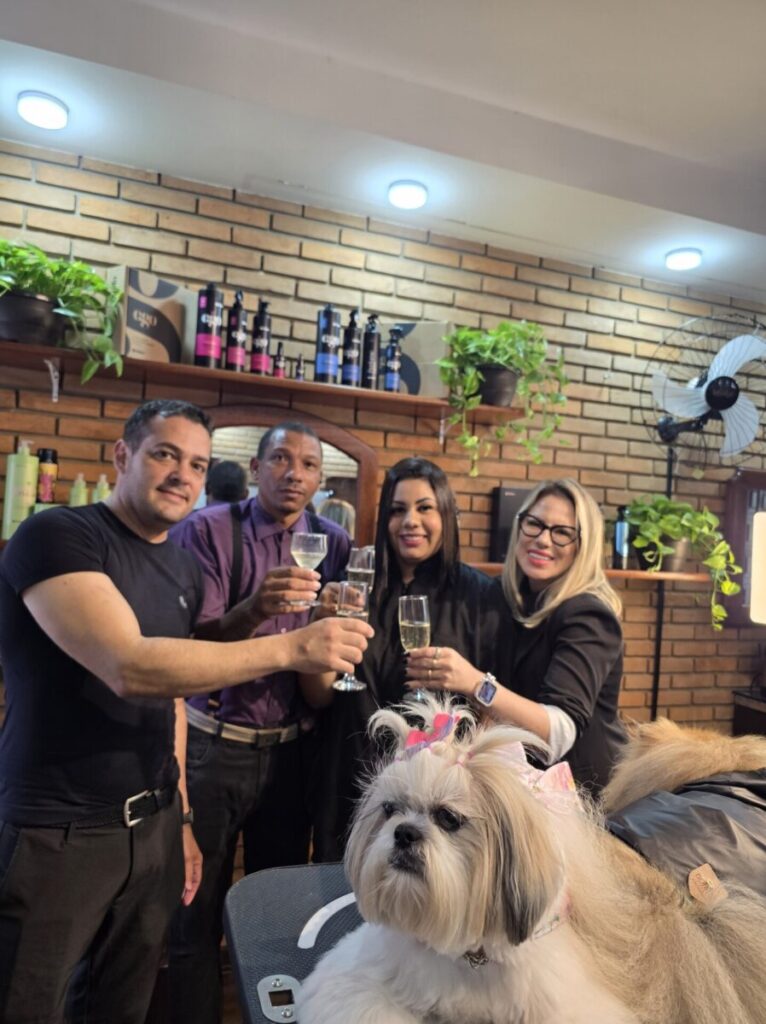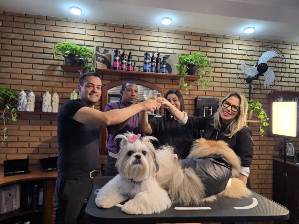 A equipe: Vitória e Manoel Gomes (groomers especializados em tosas especiais), Leonardo e Sandra Zorzella prepararam o espaço para atender os clientes com conforto e carinho, onde será feita toda a análise da pelagem com a indicação de tratamento e corte.