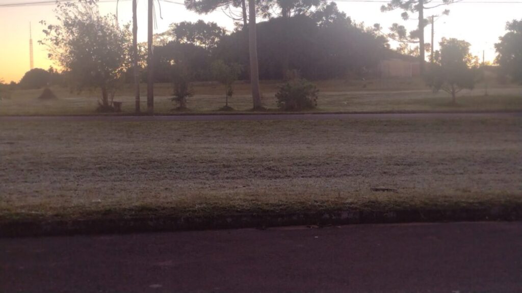A madrugada desta quarta-feira, 25 de junho, foi considerada a mais fria do ano com temperaturas baixas e geada. A reportagem recebeu imagens de várias regiões da cidade e área rural.