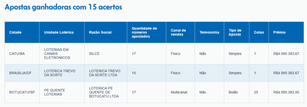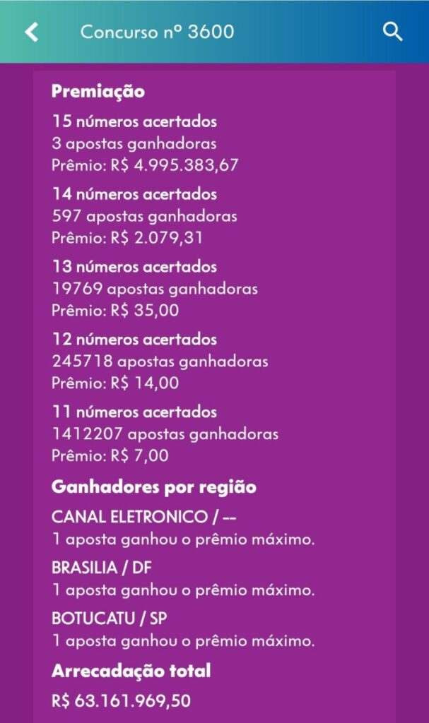 Após a divisão, o valor para cada apostador será perto de 200 mil reais (R$ 199.815,34).