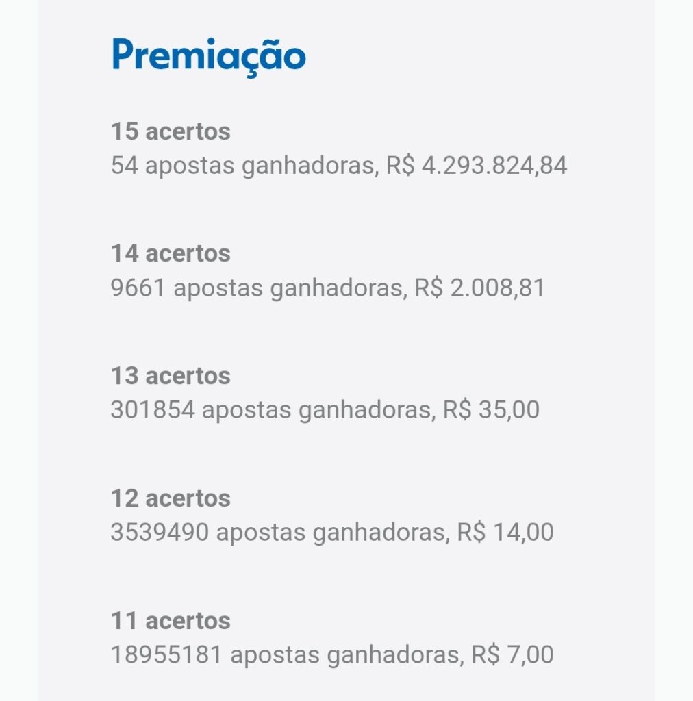 O prêmio para cada aposta vencedora é R$ 4.293.824.
