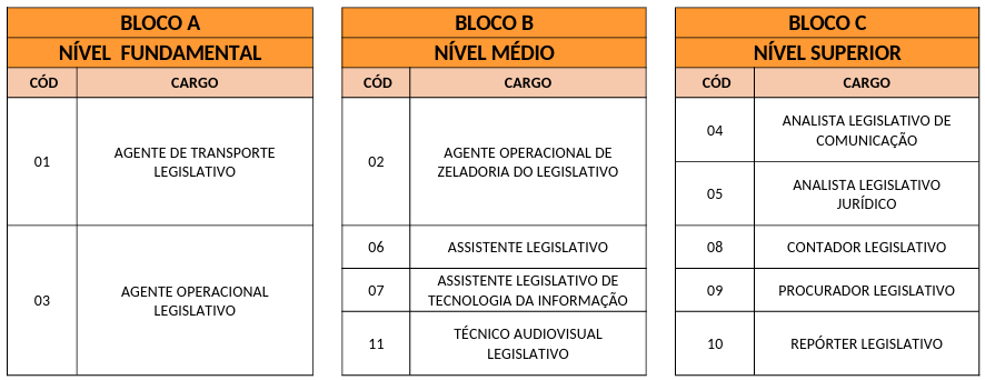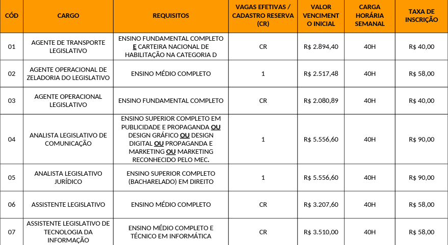 Cargos e ensino exigido: