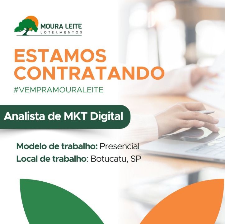 A Moura Leite Loteamentos, empresa com 29 anos de atuação no setor de empreendimentos imobiliários, anuncia a abertura de mais uma vaga de emprego para atuação presencial em Botucatu-SP.