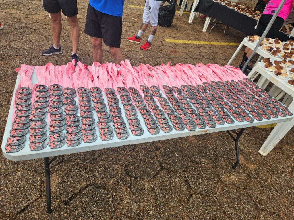 Após o treino, os participantes puderam desfrutar de um delicioso café da manhã coletivo, celebrando o espírito de união que marcou o encontro. Cada atleta também recebeu uma linda medalha, símbolo de participação e apoio à campanha Outubro Rosa.