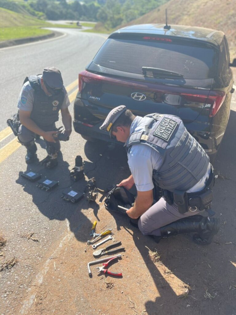 Durante a fuga, no km 206 os criminosos jogaram um saco preto com módulos eletrônicos e bombas para veículo diesel e no km 204 um saco de lixo com ferramentas, que foram recolhidos pelos policiais rodoviários.