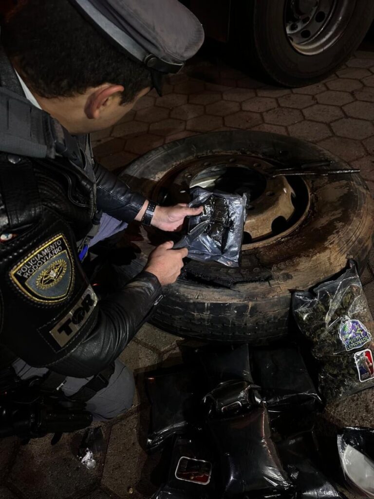 Um homem de 30 anos foi preso por tráfico de drogas na rodovia Castello Branco (SP-280), em Avaré, transportando porções de drogas dentro de um dos pneus de um caminhão.