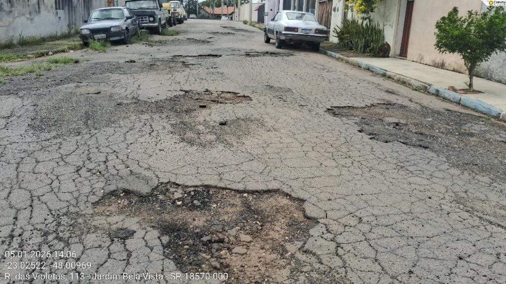 A reportagem do 14News recebeu fotos de uma rua toda esburacada em Conchas (SP).