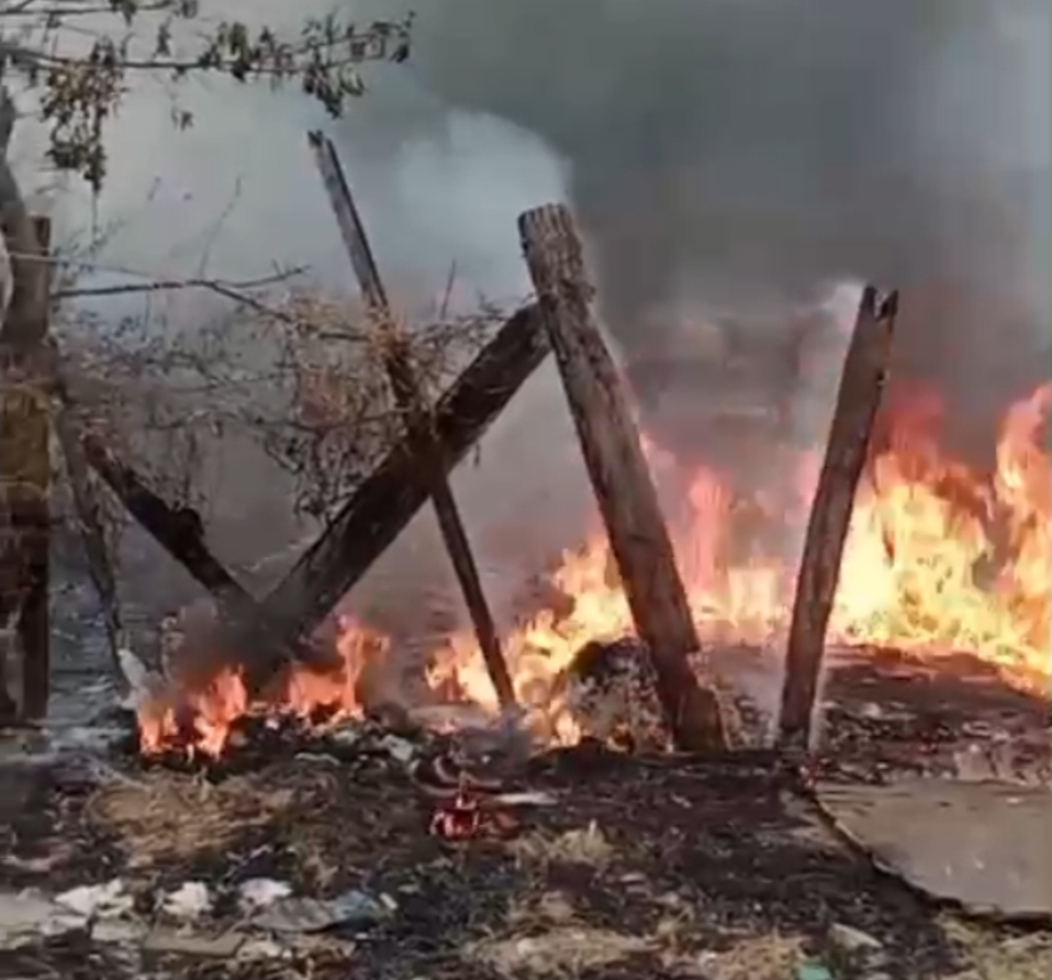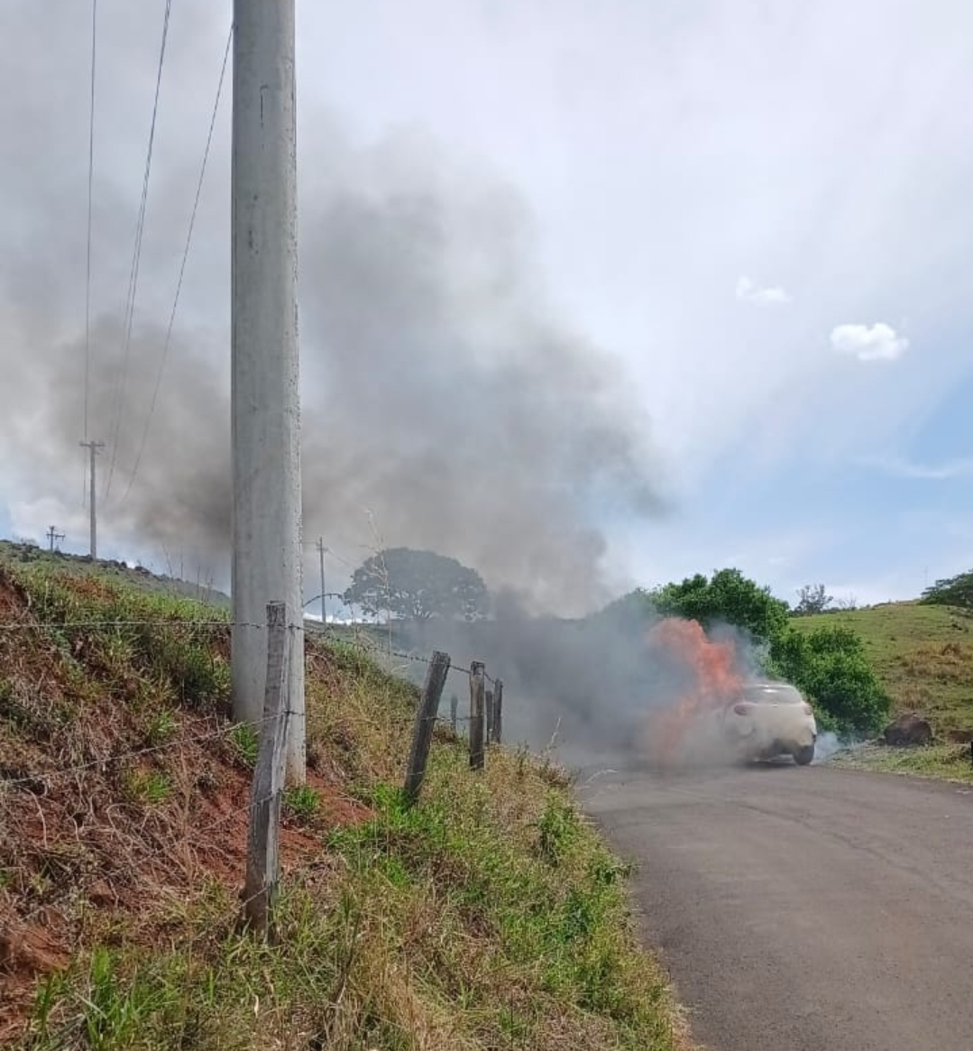 Um carro pegou fogo na tarde deste domingo, 26 de outubro de 2025, na estrada rural, perto do Bairro de Piapara.