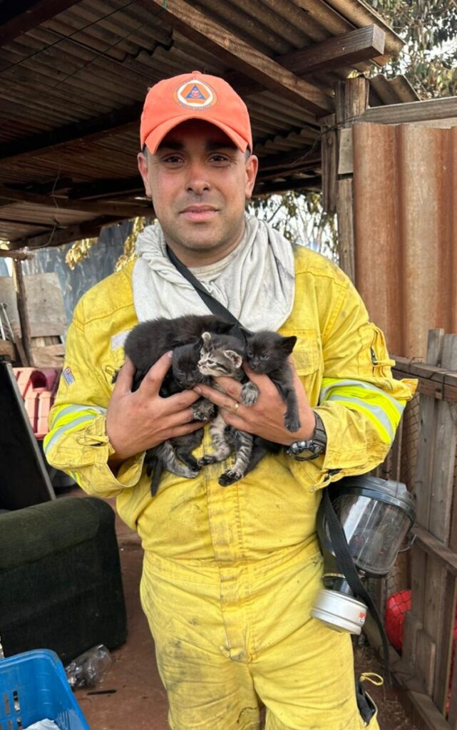 Gatos foram resgatados durante o trabalho das equipes. Os animais estavam na região do incêndio.