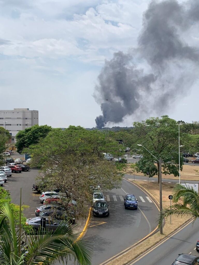 A fumaça densa e escura provocada pelo incêndio podia ser vista de longe.