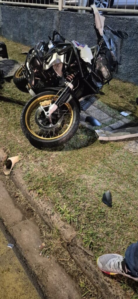 O motociclista relatou que saiu do semáforo do posto de combustíveis e ao chegar na segunda marcha já houve a colisão.