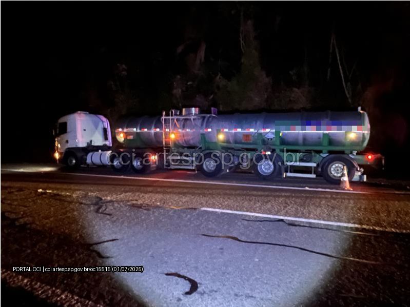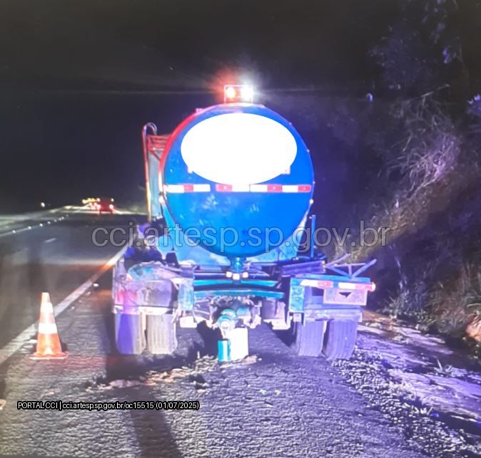 Uma colisão traseira foi registrada com uma carreta com produto perigoso, por volta da 1h17 da madrugada desta terça-feira, 1 de julho, no quilômetro 175 da Rodovia Castello Branco, em Bofete.