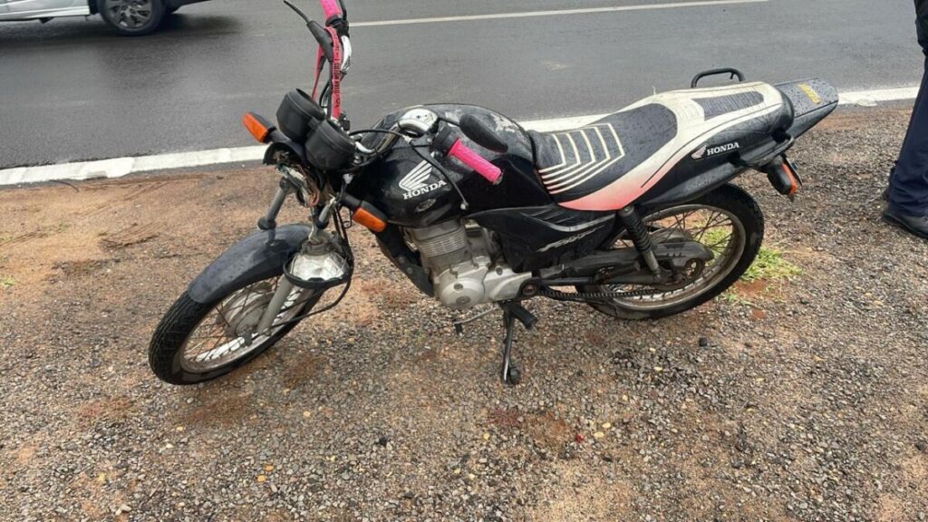No local, o veículo Citroen avançou a sinalização de parada obrigatória, alegando que não tinha ciência da mudança da sinalização, local bem sinalizado com sinalização horizontal (faixa de retenção) e vertical placa (R1), colidindo contra uma motocicleta Honda CG preta, tendo sua condutora caído ao solo e em consequência lesionando a mão direita (fratura) e antebraço esquerdo (possível fratura).