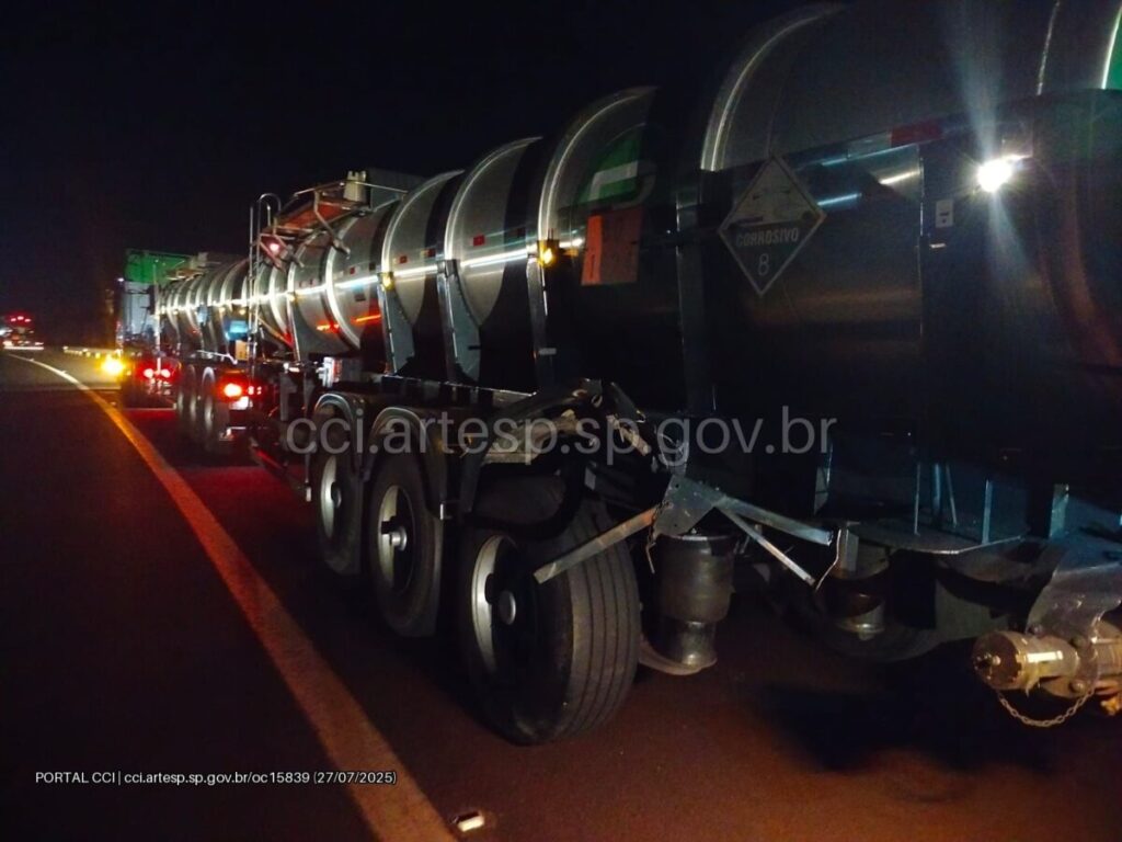 “Segundo informações colhidas no local, o automóvel Fiat Argo seguia sentido oeste pela faixa 01 quando, no quilômetro citado (252,3), não avistou o bitrem Scania R560 que seguia logo a sua frente e, sem tempo de frear ou desviar, o automóvel colidiu contra sua traseira. Na sequência, o automóvel capotou e se imobilizou pela faixa 01 e o bitrem se imobilizou pelo acostamento 200 metros à frente”, informou o CCI – Centro de Controle de Informações da Artesp.