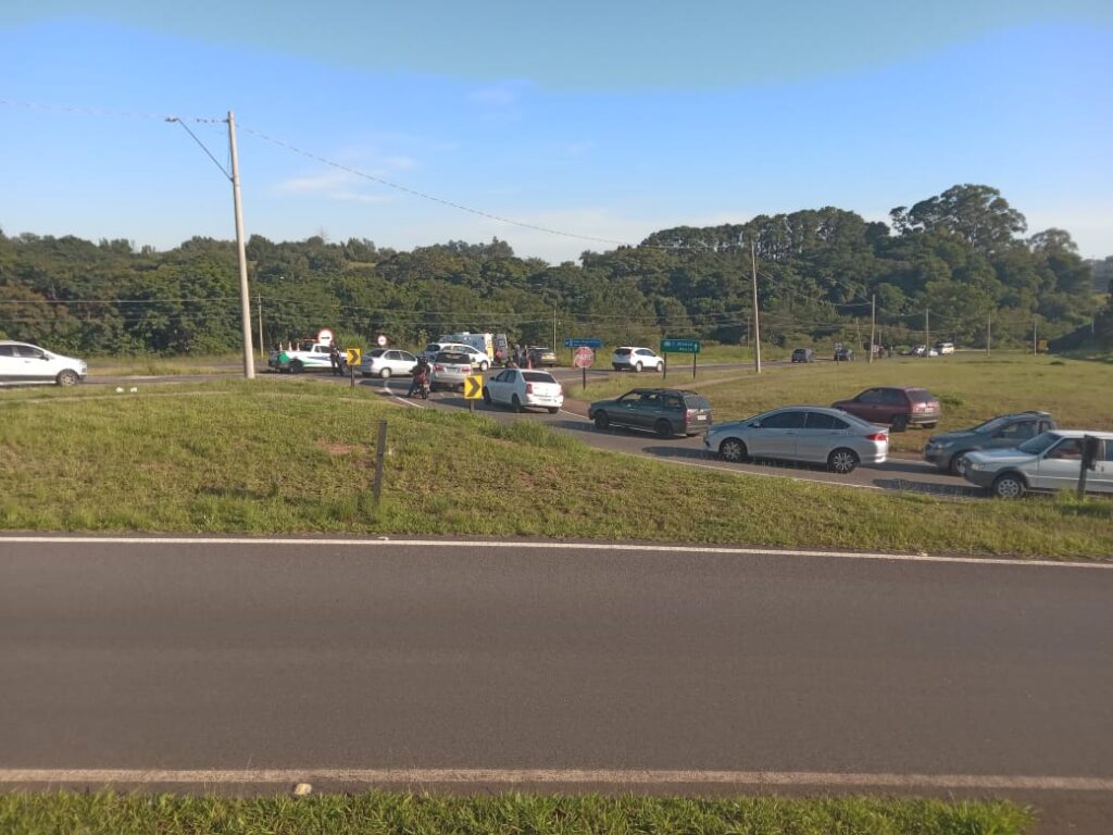 Segundo a Polícia Militar Rodoviária, trata-se de uma colisão transversal, envolvendo uma carro de passeio e uma motocicleta, causando lesões de estado leve na condutora da motocicleta.